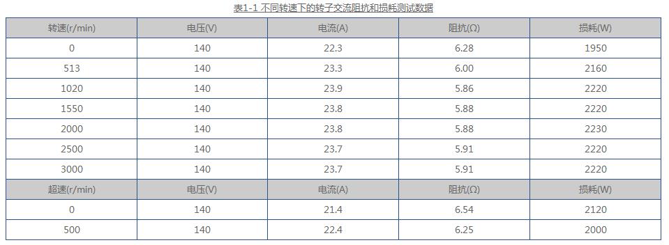 某電廠125MW雙水內(nèi)冷發(fā)電機(jī),QFS-125-2型,額定勵磁電壓為265V,額定勵磁電流為1650A,轉(zhuǎn)速為3000r/min。在交接試驗時進(jìn)行了轉(zhuǎn)子交流阻抗和損耗的測試。測試數(shù)據(jù)見表1-1,將測試數(shù)據(jù)與出廠數(shù)據(jù)(見表1-2)作比較,得出結(jié)果是:在測量差范圍內(nèi)無顯著變化。