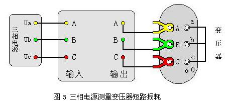 (2)三相三線電源測(cè)量變壓器短路損耗: