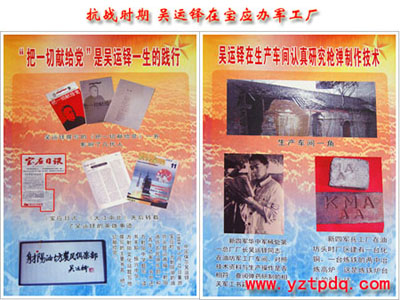 吳運鐸是在礦山上長大的。他從小隨父生活在江西萍鄉(xiāng)安源煤礦。為了謀生,進(jìn)入湖北大冶煤礦做機電工??谷諔?zhàn)爭爆發(fā)后,他來到皖南,報名參加了新四軍,原想上前線拿槍殺敵,卻被安排到軍司令部修械所制造槍炮子彈??吹剿斓牟綐尯妥訌椝偷角熬€去了,緩解了部隊作戰(zhàn)所需槍支彈藥緊張的矛盾,吳運鐸認(rèn)識到造槍拿槍一樣是為革命,因而將修槍造彈視為自己的神圣使命。1939年5月18日,他光榮地加入了共產(chǎn)黨。在極端艱苦的斗爭環(huán)境中,吳運鐸始終抱著“不辱沒共產(chǎn)黨員這個崇高稱號”的想法,從不退縮,一往向前。在油坊頭籌建兵工廠初期,一無廠房,二無設(shè)備,在吳運鐸的帶領(lǐng)下,先借用群眾幾間草房干起來。為了解決設(shè)備問題,他們利用搜集的廢舊鋼材,制成各種機器數(shù)十臺。不到幾個月,就建成了鐵皮、鋼板結(jié)構(gòu)的廠房200多間,在廠東南角建起了煉鐵爐,西北角建起了煉銅爐,占地200余畝,有工人200多人,干部50多人。每到夜晚工廠被汽油燈照得通明,兩座高爐的火光映紅夜空,兵工廠不僅生產(chǎn)子彈、榴彈、炮彈,還不斷研制新式武器,制造“52”小炮、“73”炮、“82”炮。吳運鐸在潛心試制各種殺傷力更強的武器過程中多次負(fù)傷。一次,在試爆炮彈時,一枚啞炮突然,吳運鐸被炸傷,左手被炸掉4個手指,左眼被炸傷,右膝蓋和腳趾被炸去一半,滿臉傷口流血不止。他被抬上卡車送醫(yī)院搶救療傷,昏迷了15天才恢復(fù)知覺,可他未等傷口痊愈,就提前出院,打著繃帶,回廠邊工作邊治療,又投入了軍工生產(chǎn)。