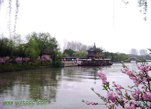 很多地方本來(lái)很美,但是也許旅游旺季時(shí)人多了也沒(méi)有意思,但那天恰好全無(wú)喧囂,沒(méi)有到處飄揚(yáng)的導(dǎo)游旗,沒(méi)有小喇叭的尖叫,就覺(jué)得什么都很好,沒(méi)有一處“視覺(jué)污染”。于是就覺(jué)得二十四橋特別詩(shī)情畫(huà)意,覺(jué)得詩(shī)畫(huà)長(zhǎng)廊特別舒展開(kāi)闊,覺(jué)得“四橋煙雨”特別清新靜美……這就值得流連又流連了,春意濃濃地化在瘦西湖中,慢慢的泡開(kāi)來(lái),溢了滿湖;而我們,真甘愿在這里沉沉地品這杯泡得恰到好處的春茶。
